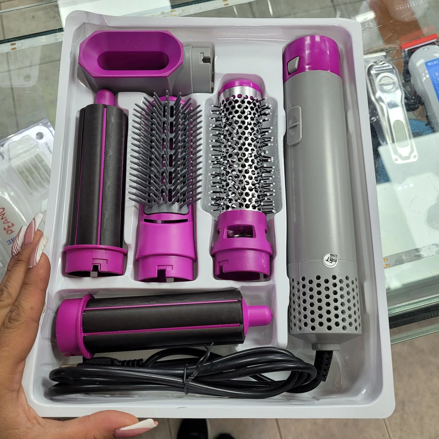 Con el secador GLOSSYBLOW™ 5 en 1 es la herramienta definitiva para tu rutina de belleza. Cambia de estilo en segundos, sin dañar tu cabello y sin perder tiempo.